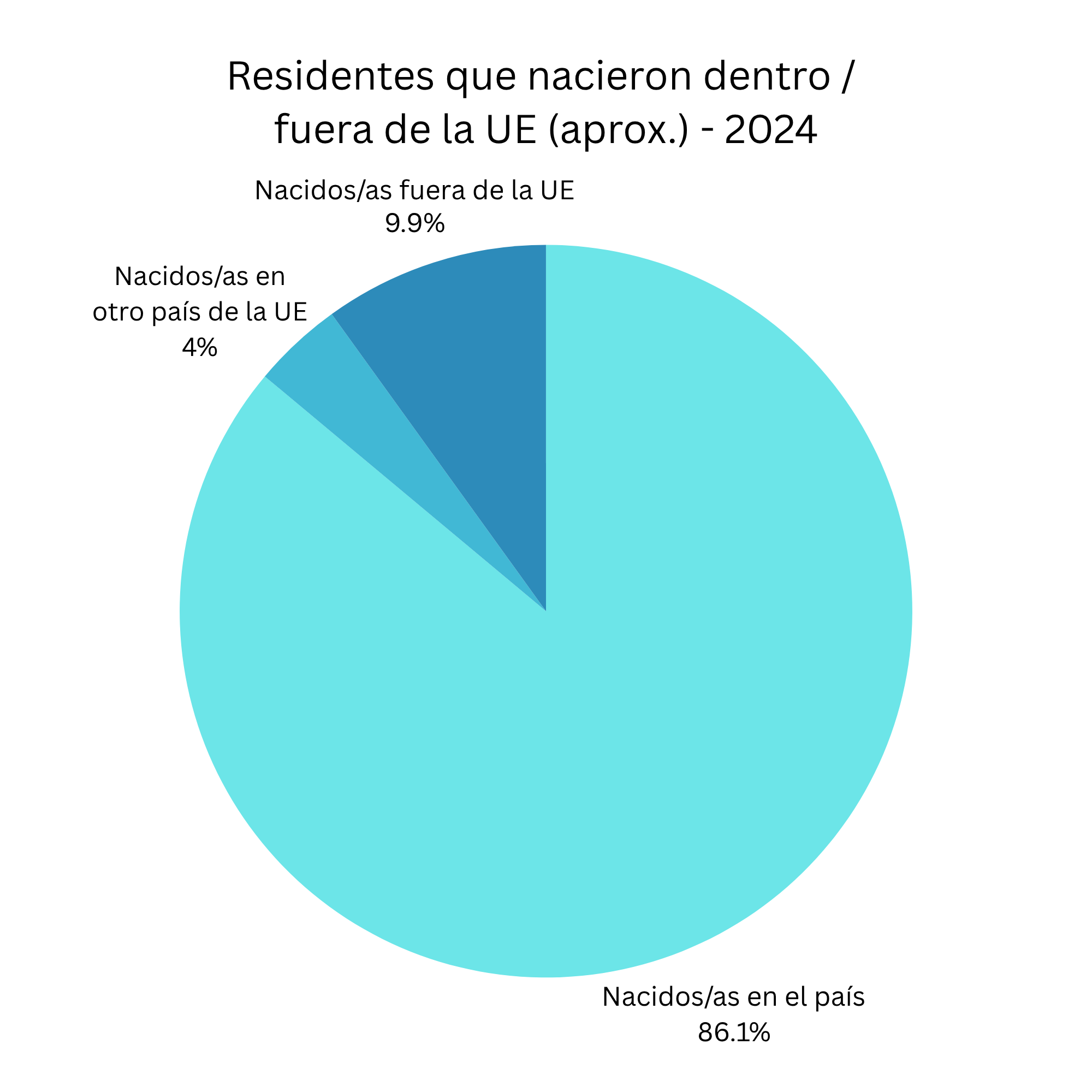 De las 449’3 millones de personas residentes de la UE (no ciudadanas), 44’7 millones (el 9’9%) nacieron fuera de la UE.