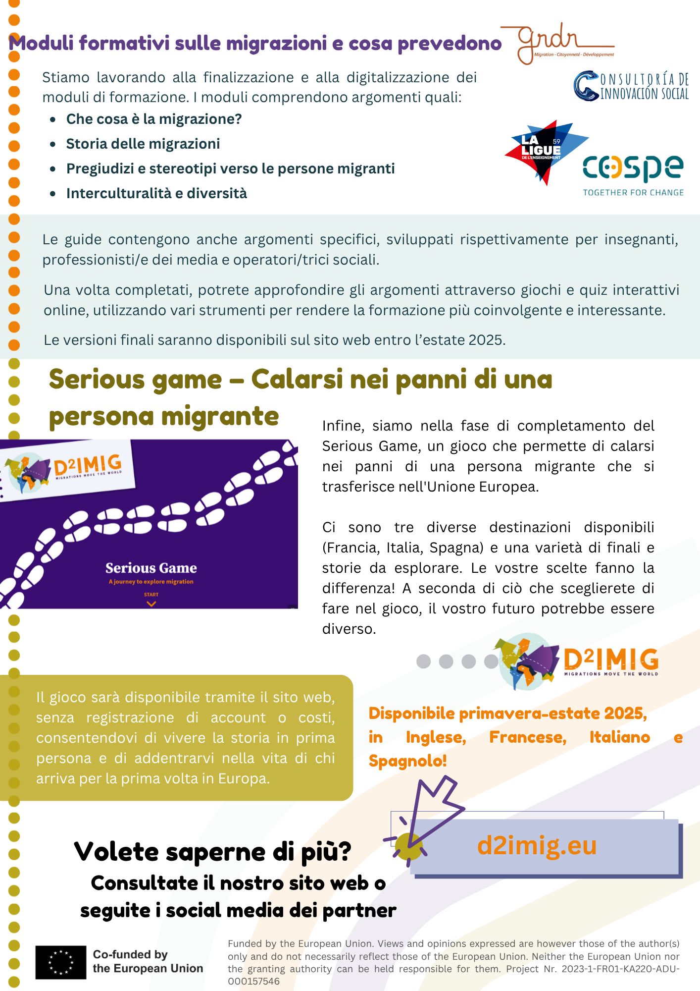 moduli formativi, il serious game sulle migrazioni e le guide pratiche del progetto, al