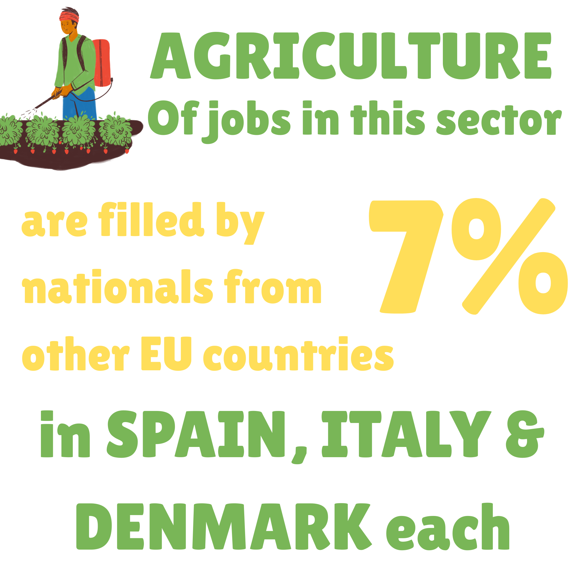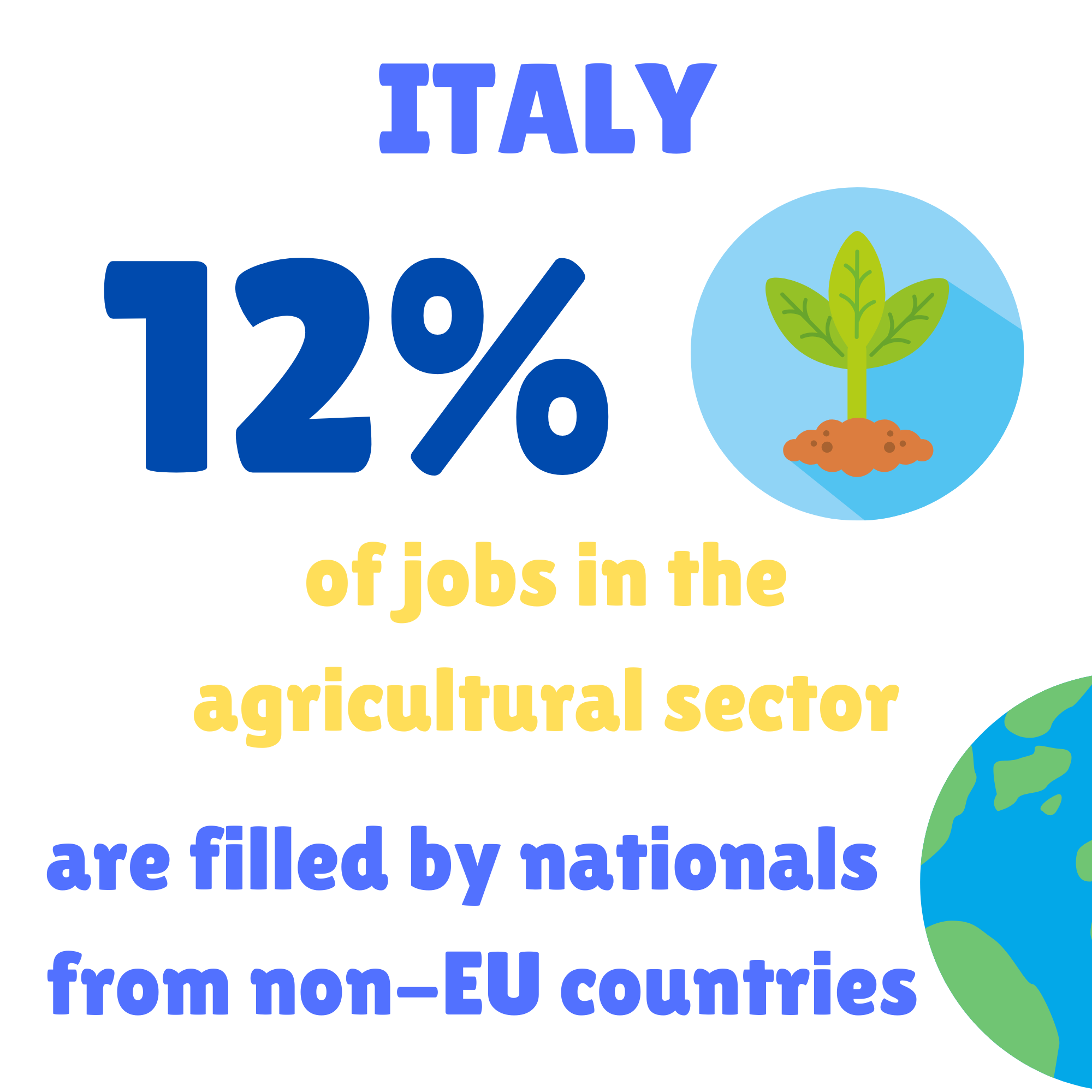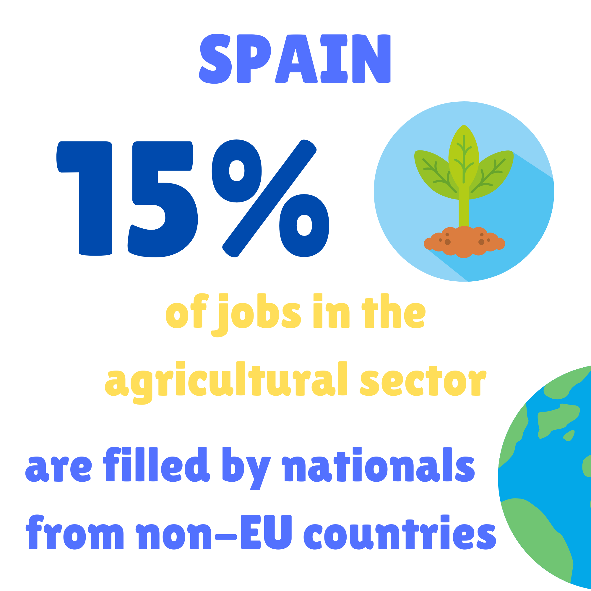 The statistics become even more surprising when taking a look at a different sector: the agricultural one. 7% of Spain’s jobs in agriculture are filled by EU national migrants and 15% even by nationals from non-EU countries. That means over 20% of the agriculture work force are non-Spanish citizens. Italy faces the same situation, albeit with 12% of non-EU nationals. With these numbers it is clear that there is a strong dependency on migrant work in agriculture.